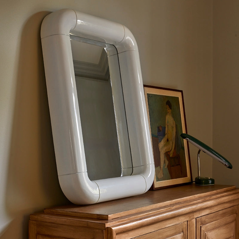 Buttery curves meet high octane gloss to give the Dora Mirror its voluptuous, yet equally elevated, silhouette. A centrepiece on its own, above a vanity, powder room or hallway console, the Dora Mirror is disarming in its quiet beauty and both a contemporary and sculptural object.