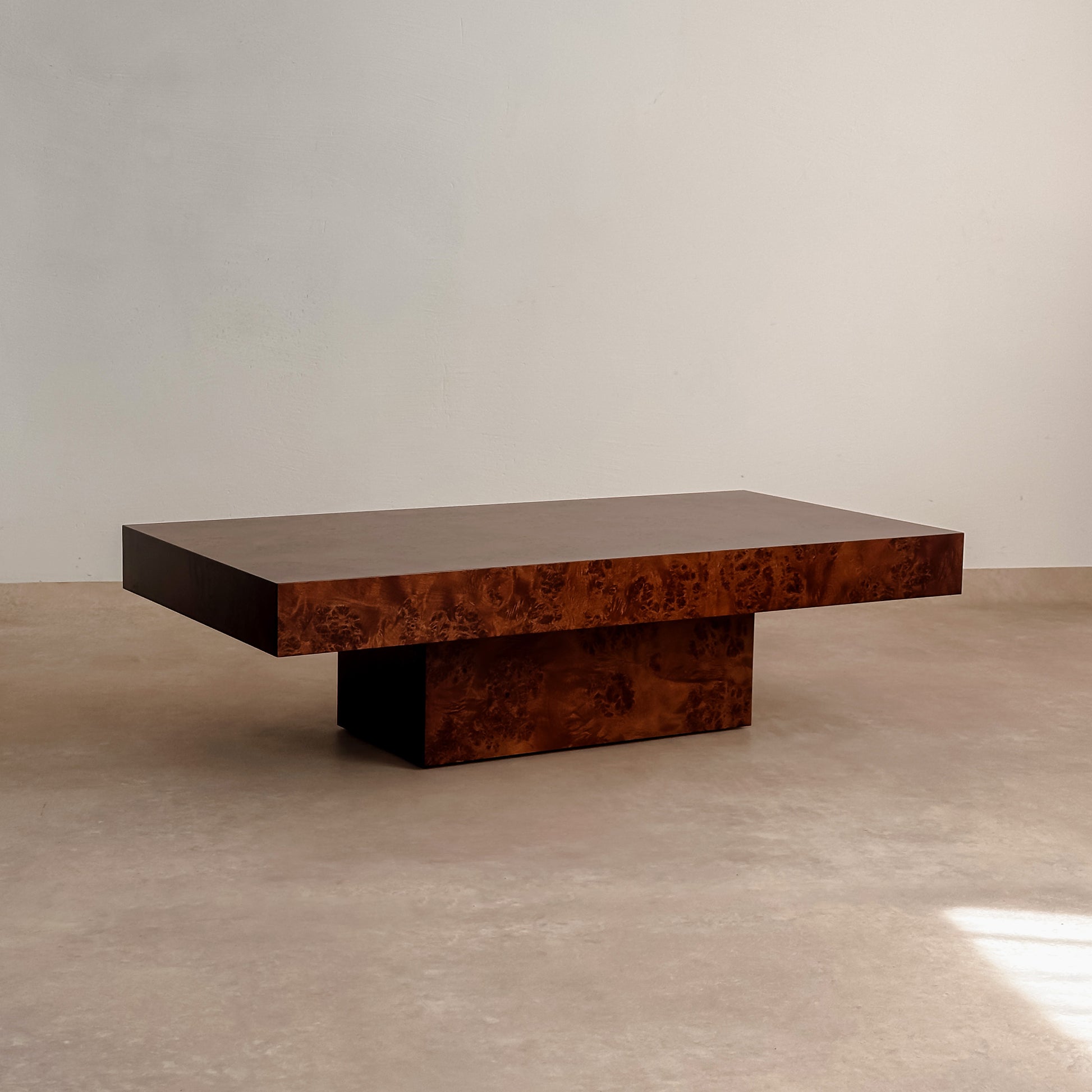 Perfect for modern interiors, this burlwood coffee table blends refined aesthetics with functional design, offering a bold yet versatile statement for any setting.